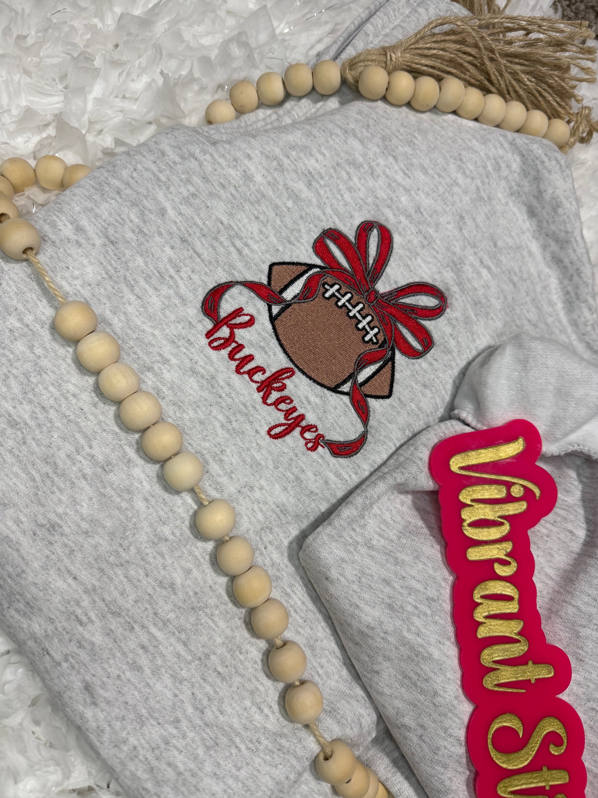 Custom football and bow quarter zip. Please use description boxes to state thread colors for the bow and the team name wanted.