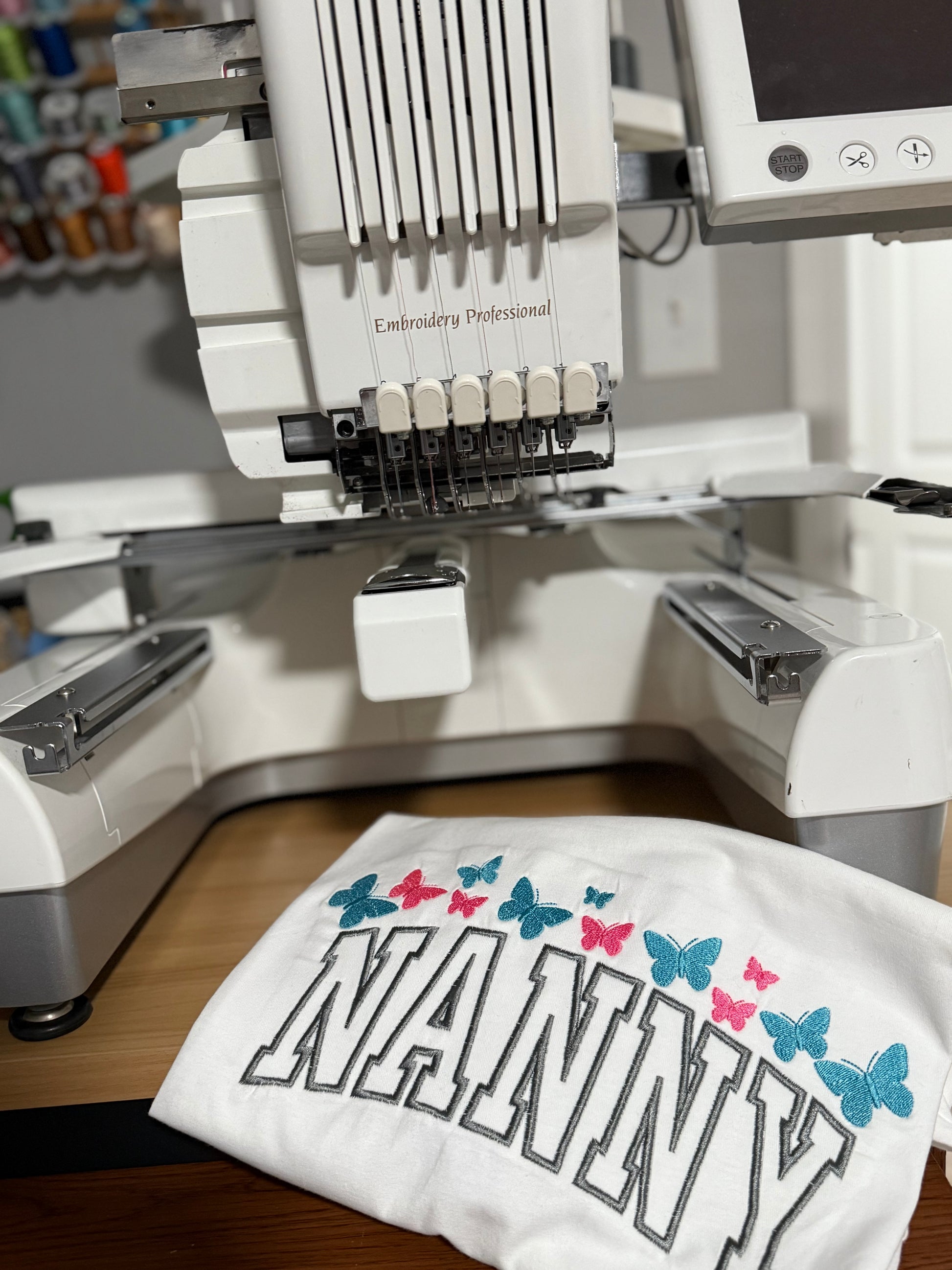 Nanny with butterflies. Please specify butterfly color in personalization area.
