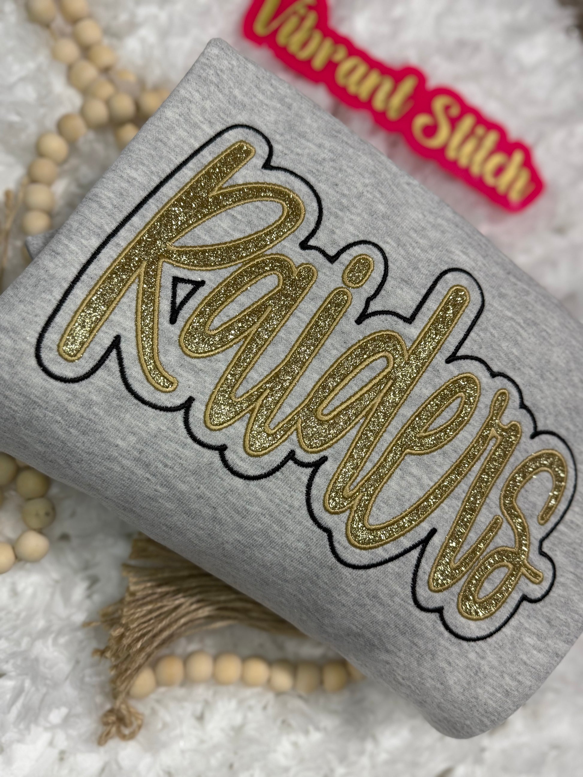 Embroidered school T-Shirt. Custom school mascots. Please use the drop down menus to select mascot, thread color, and vinyl glitter color.